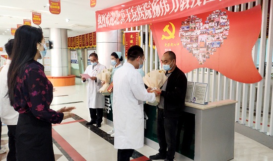 医院党支部书记王明国在欢迎仪式上指出,张冶、陈双、王荣超三位同志在抗疫一线的工作中恪尽职守、连续奋战、不计得失、坚守岗位,体现了良好的职业操守和专业素养,展现出颠康医院医护人员敬佑生命,甘于奉献的精神风貌,得到了上级部门领导的肯定。希望她们能够尽快调整好身心状态,返回工作岗位后要继续发扬伟大的抗疫精神,为保护人民群众生命健康贡献力量。